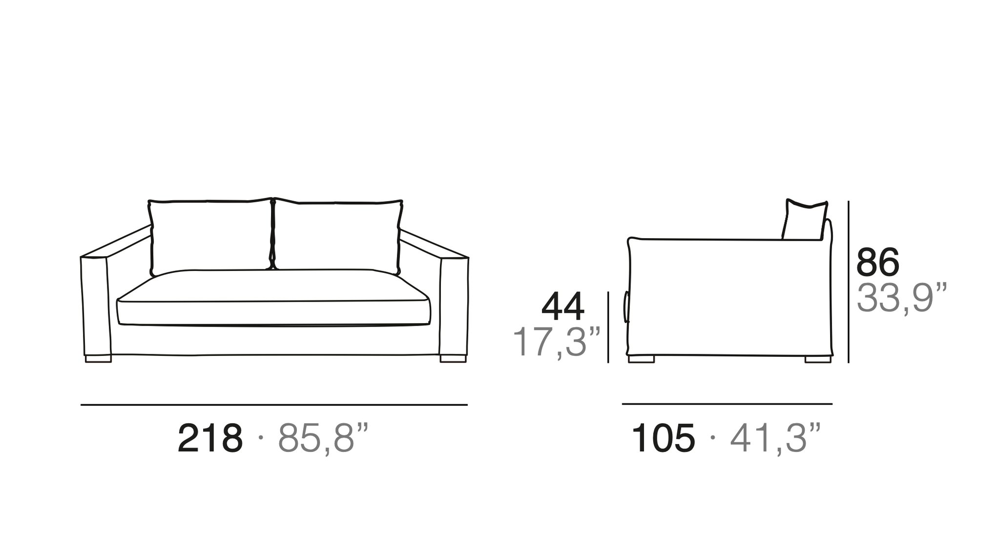 Tapizado: Fijo en la estructura, cojines asiento y respaldo desenfundables lavado en lavadora doméstica, en las telas que lo permitan.