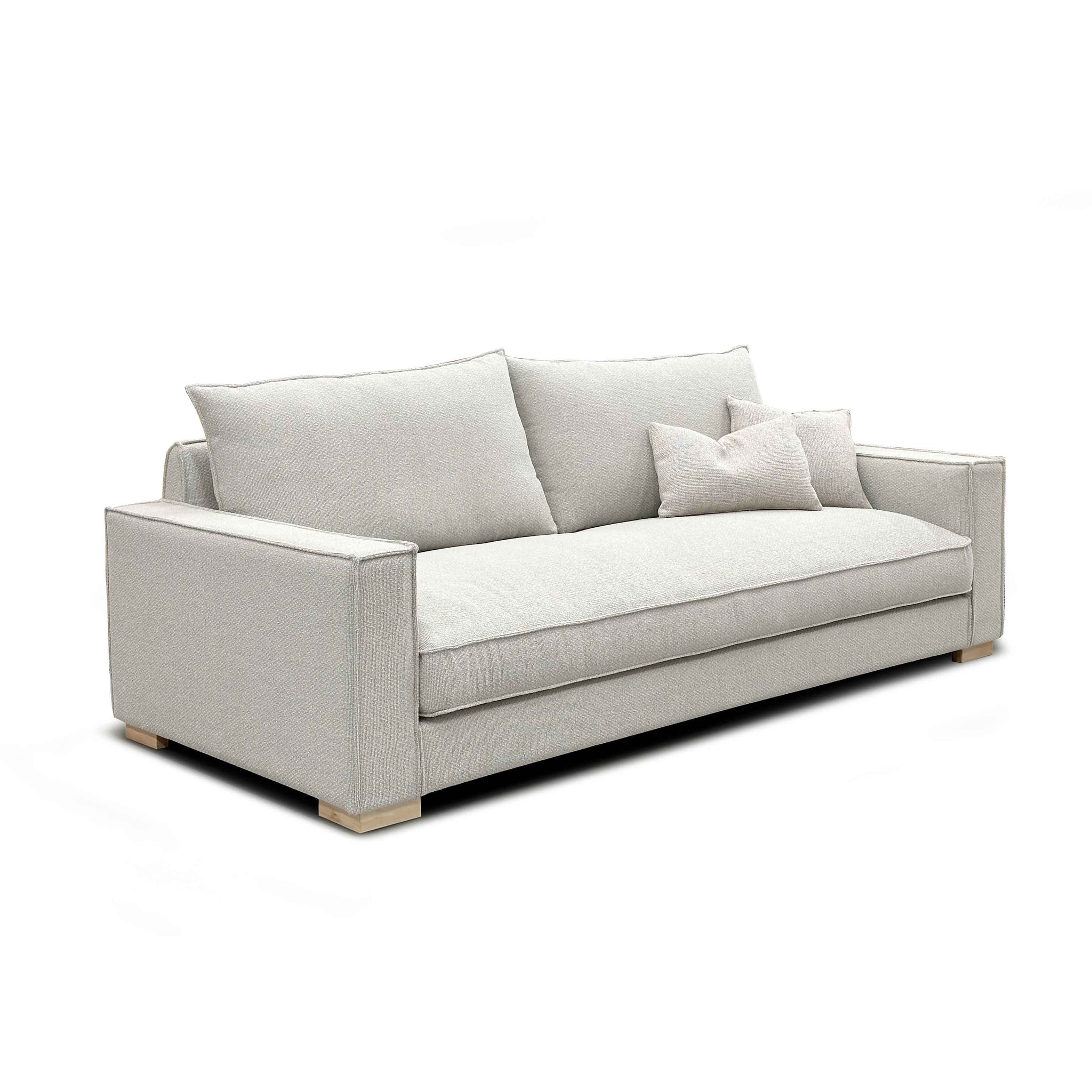 Pies: Visibles de 5cm de altura, en madera de haya barnizada, color Natural.
