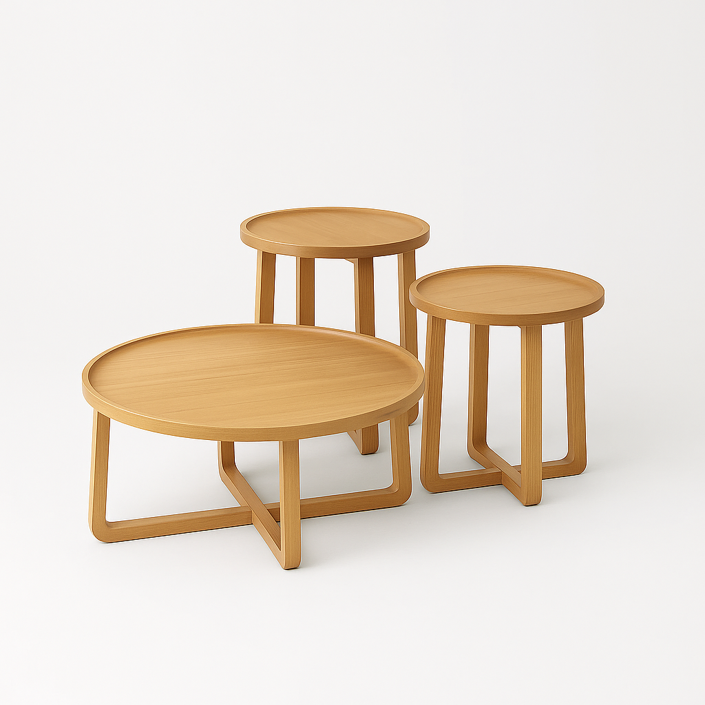Mesa madera maciza de haya alistonada, barnizada en roble 426.